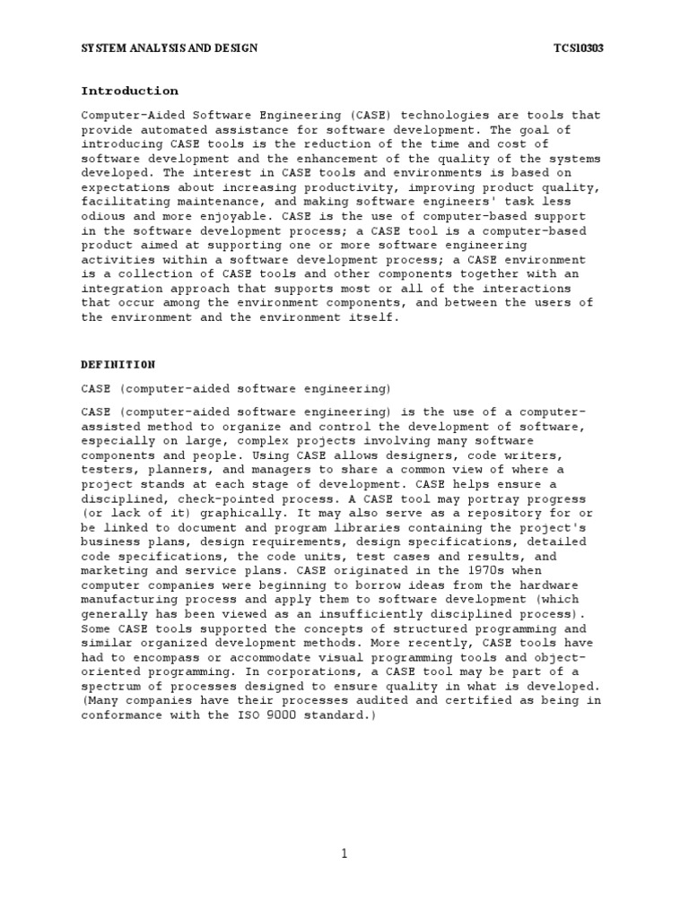 CASE (computer-aided software engineering) is the use of a computerassisted method to organize and control the development of software,
