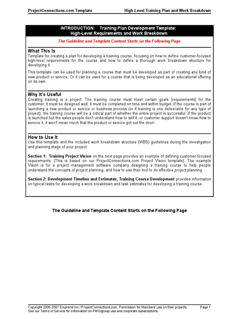 INTRODUCTION: Training Plan Development Template: