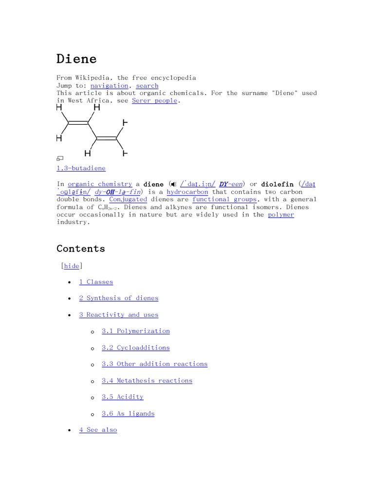 In organic chemistry a diene ( /da.in/ DY -een) or diolefin (/da