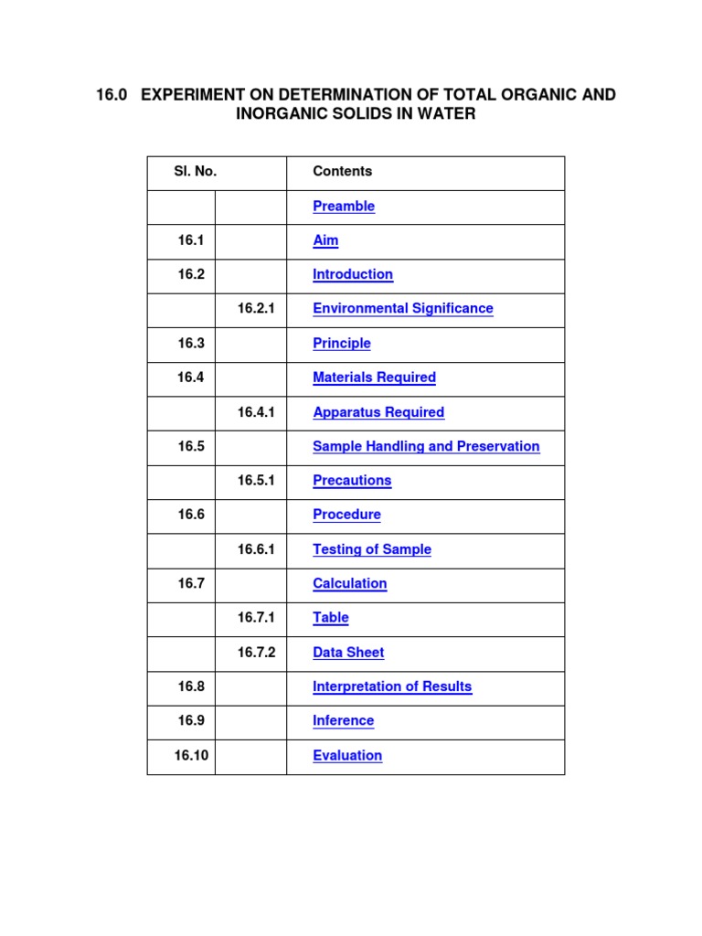 16.0 EXPERIMENT ON DETERMINATION OF TOTAL ORGANIC AND