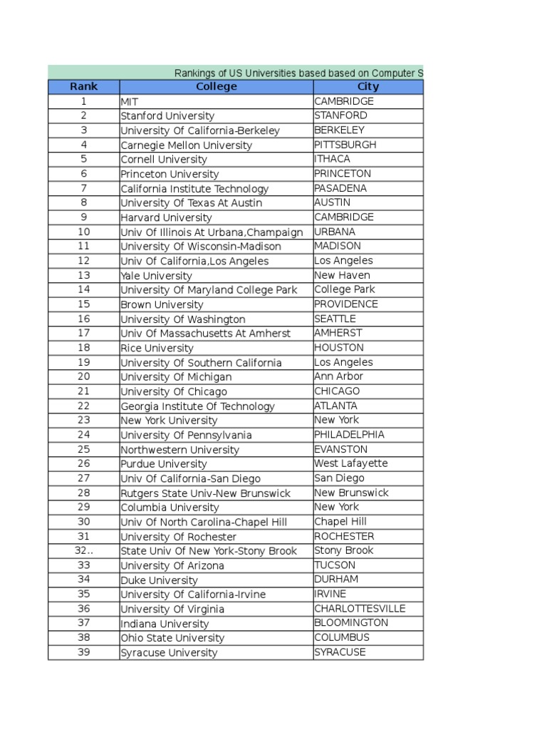 Rankings of US Universities based based on Computer Science Department Faculty,R