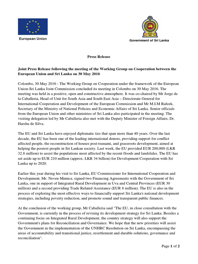 conclusions to the EU-Sri Lanka Join Commission planned to be held in Brussels in early July. The