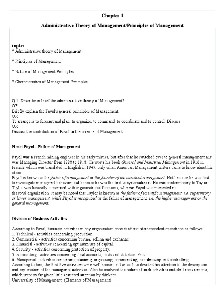 systematic analysis of the management process and management functions, Fayol formulated a set of fourteen