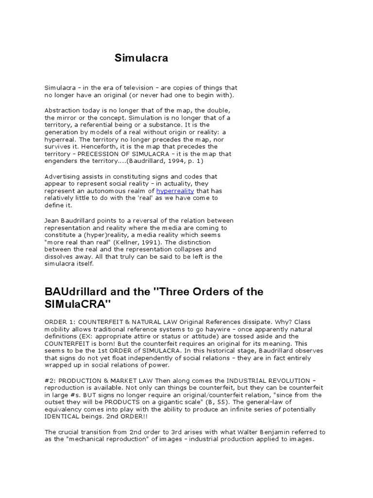 mutable. Baudrillard called this phenomenon the "precession of simulacra".