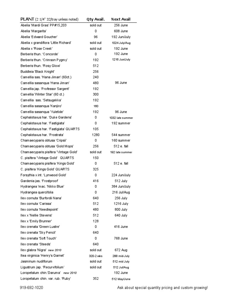 919-692-1020 Ask about special quantity pricing and custom growing!