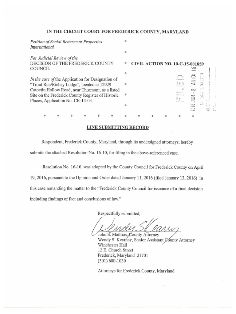 Frederick County complies with a judge's order and produces findings explaining its June 2, 2015 vote