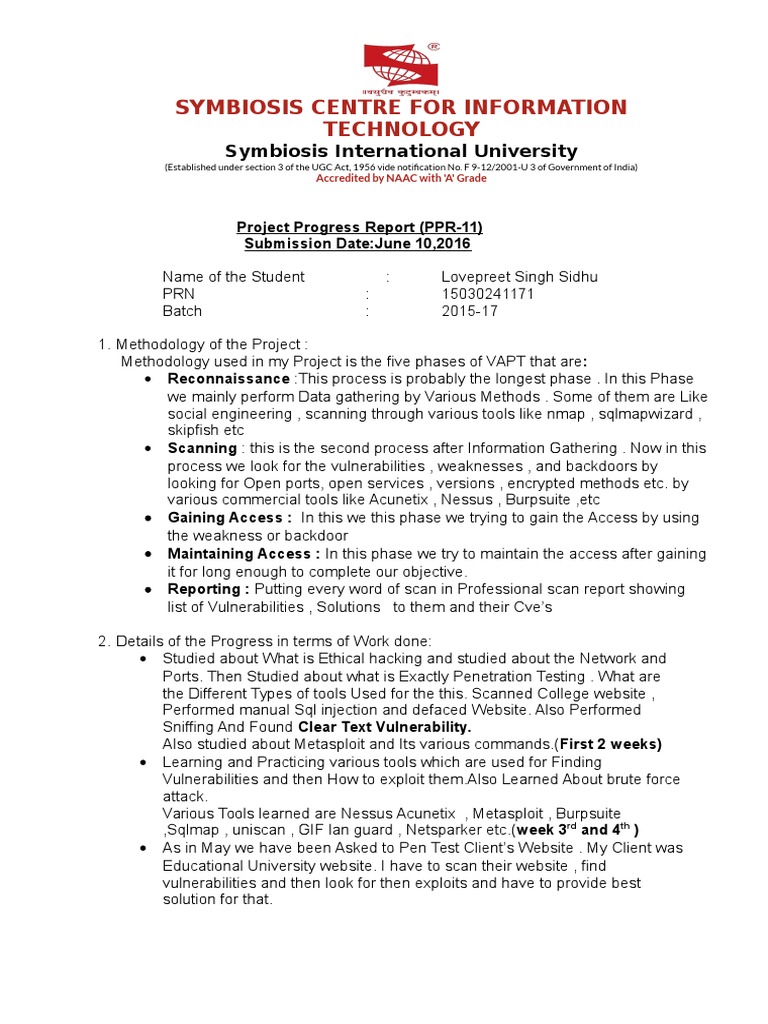 Various Tools learned are Nessus Acunetix , Metasploit , Burpsuite