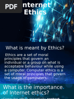 Internet ethics means acceptable behaviour for using internet. We should be honest, respect the rights and