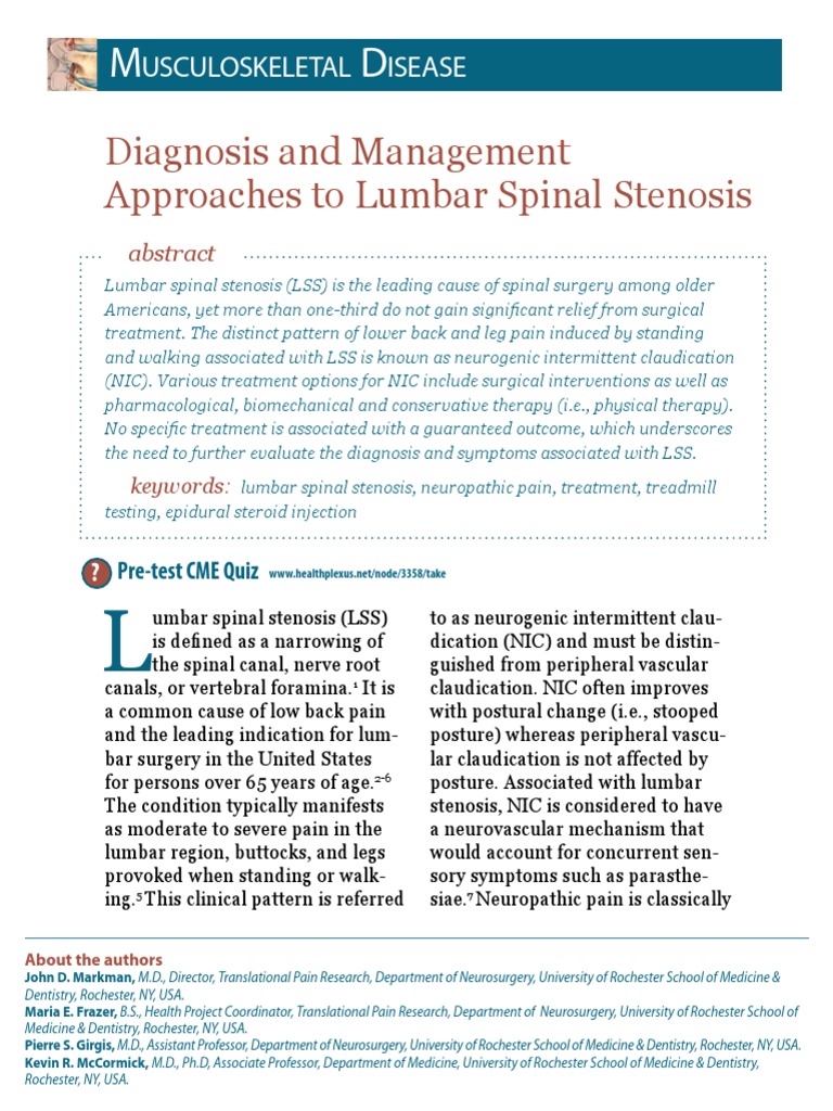Diagnosis and Management Approaches to Lumbar Spinal Stenosis