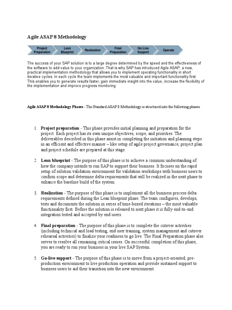 Agile ASAP 8 Methodology Phases - The Standard ASAP 8 Methodology is structured into the following phases.