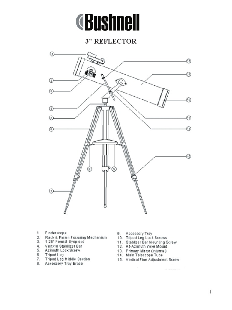 1. Remove telescope from the carton and Identify all components. READ THROUGH ASSEMBLY