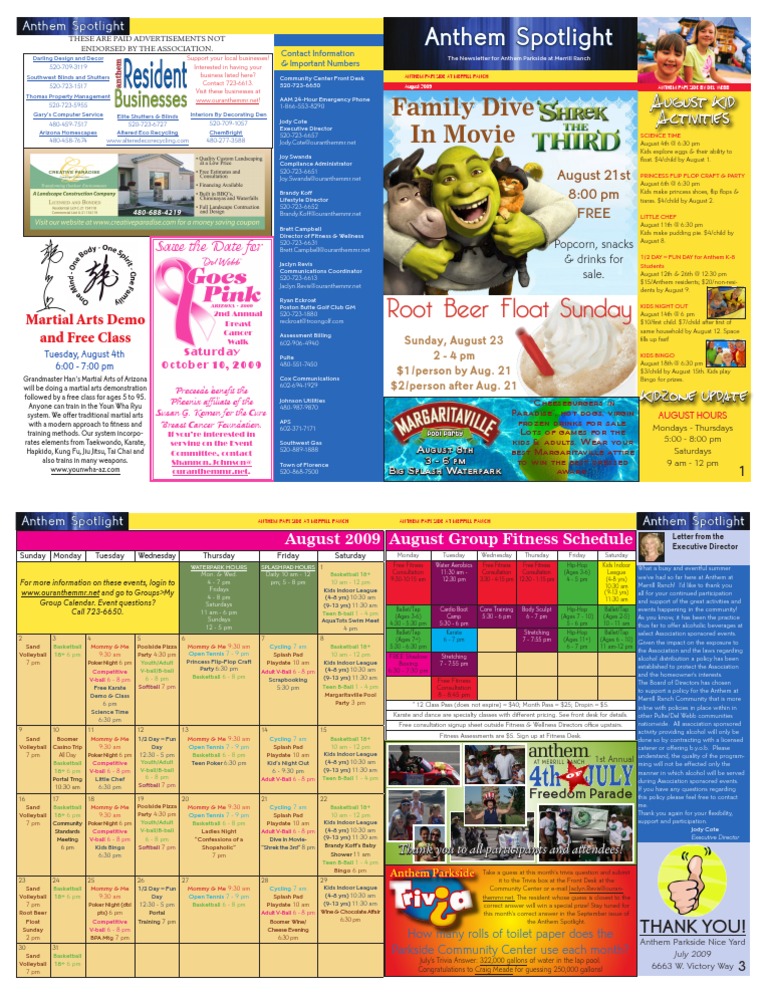 August 2009 August Group Fitness Schedule Letter from the