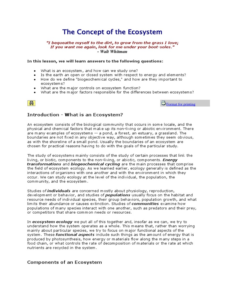 The Concept of The Ecosystem: - Walt Whitman