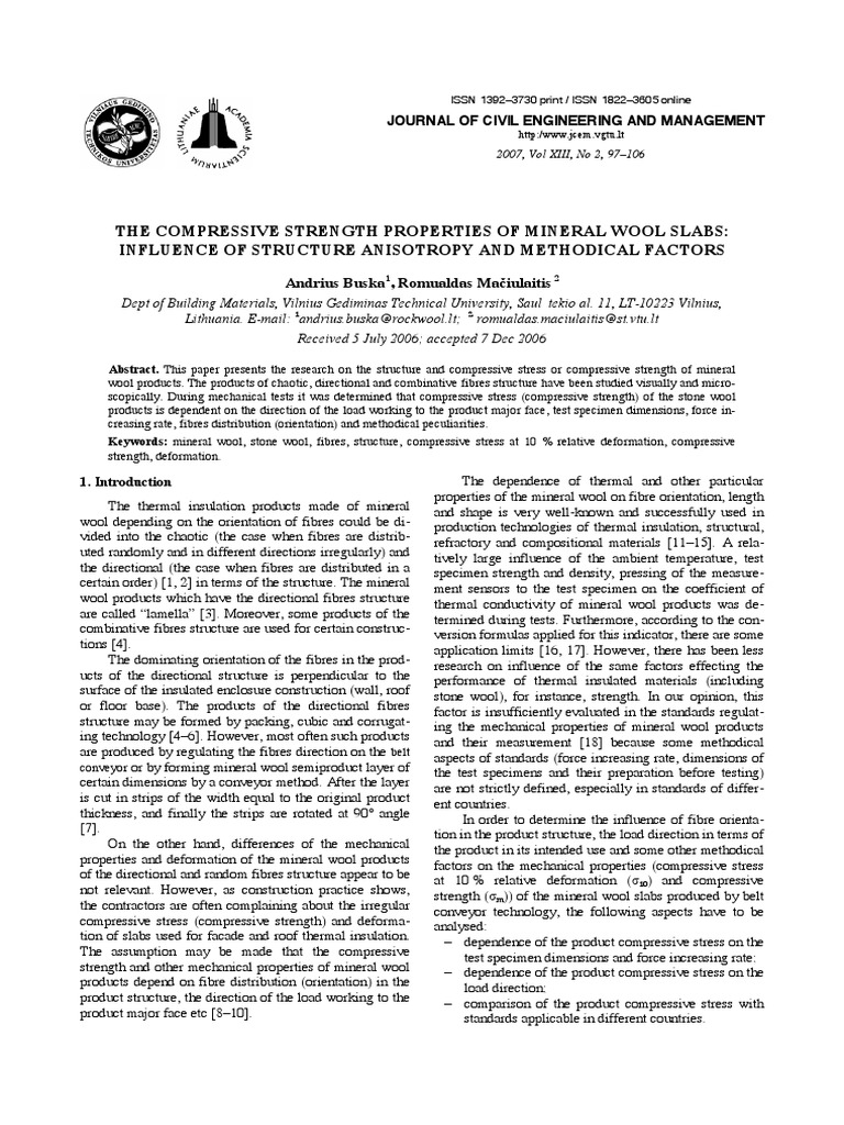the compressive strength of mineral wool. In Proc of National Conference of Science and Industry in Lithuania
