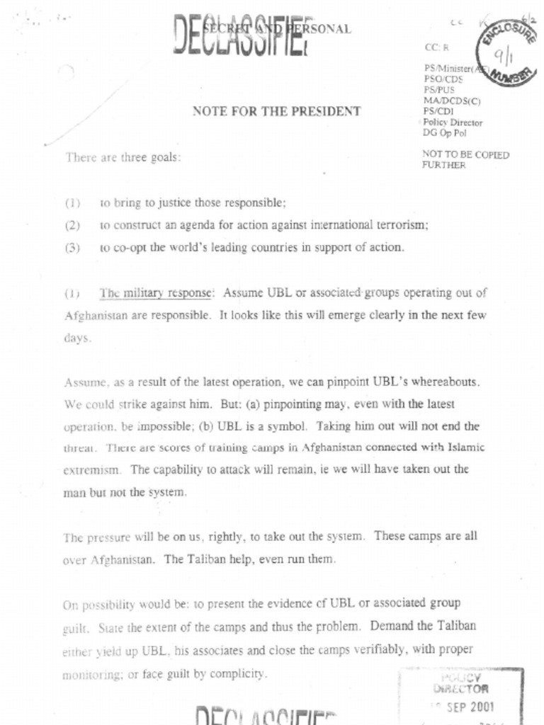 Description: Combined letters and paraphrased remarks on notes from Tony Blair to George W Bush released as part of the Chilcot Inquiry. Six letters are missing and are including as paraphrased and quoted remar...