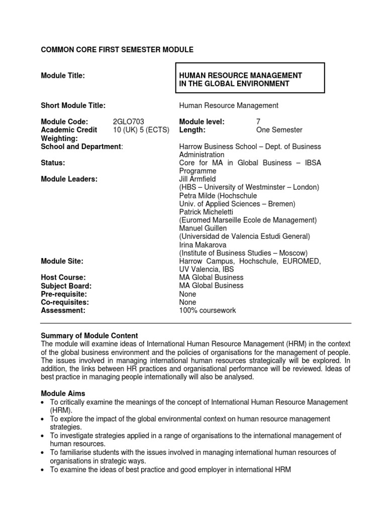 The module will examine ideas of International Human Resource Management (HRM) in the context