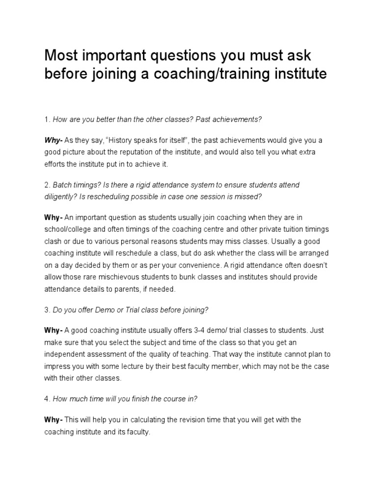 before joining a coaching/training institute
