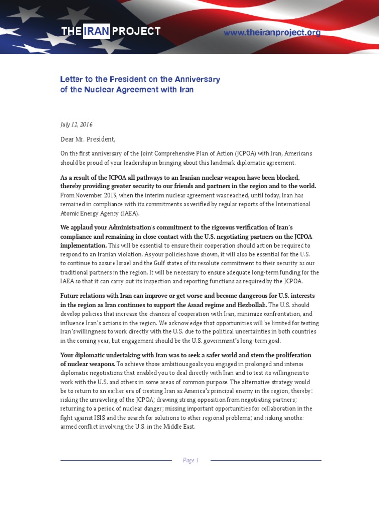 * The signers of this statement are either former senior officials of the U.S. government or prominent