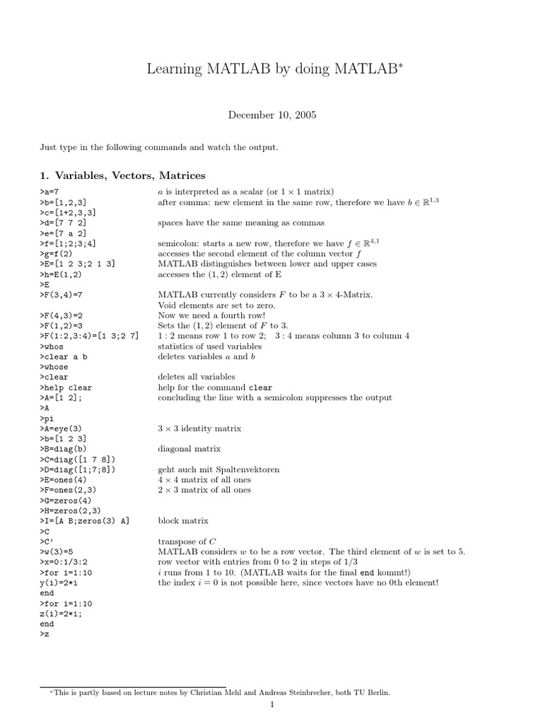 Learning MATLAB by doing MATLAB