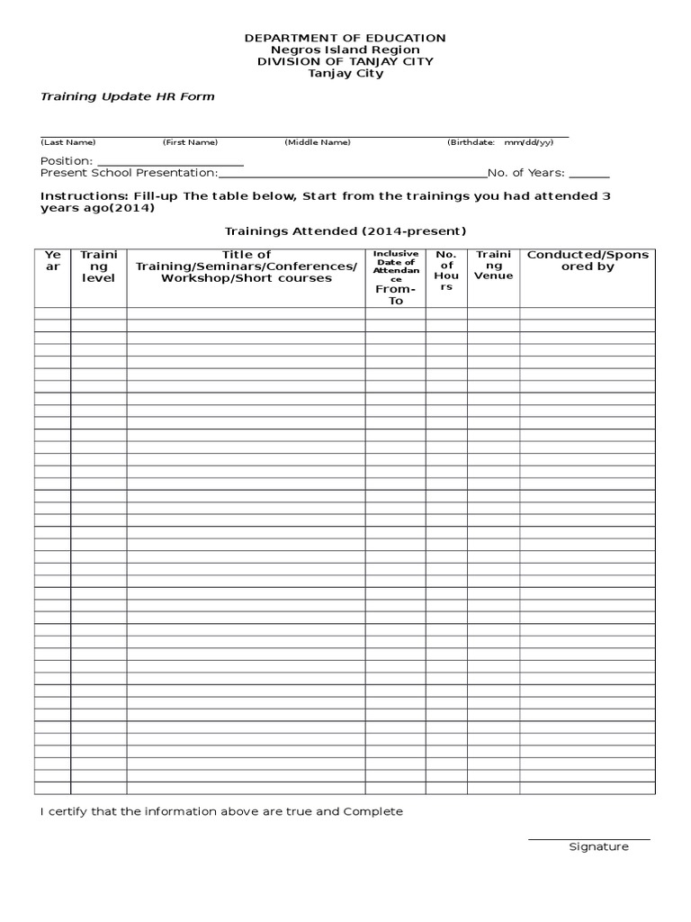 Training Update HR Form