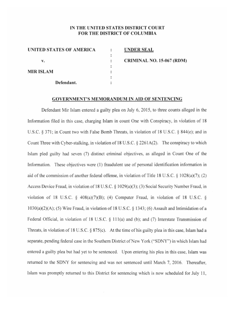 A detailed description of Mir Islam's crimes is set forth in the Statement of Offense filed in