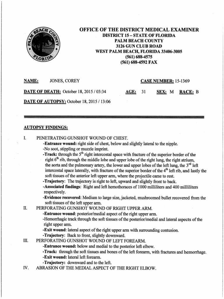OFFICIAL PRESENT AT AUTOPSY: Detective Drake of the Palm Beach Sheriff's Office.