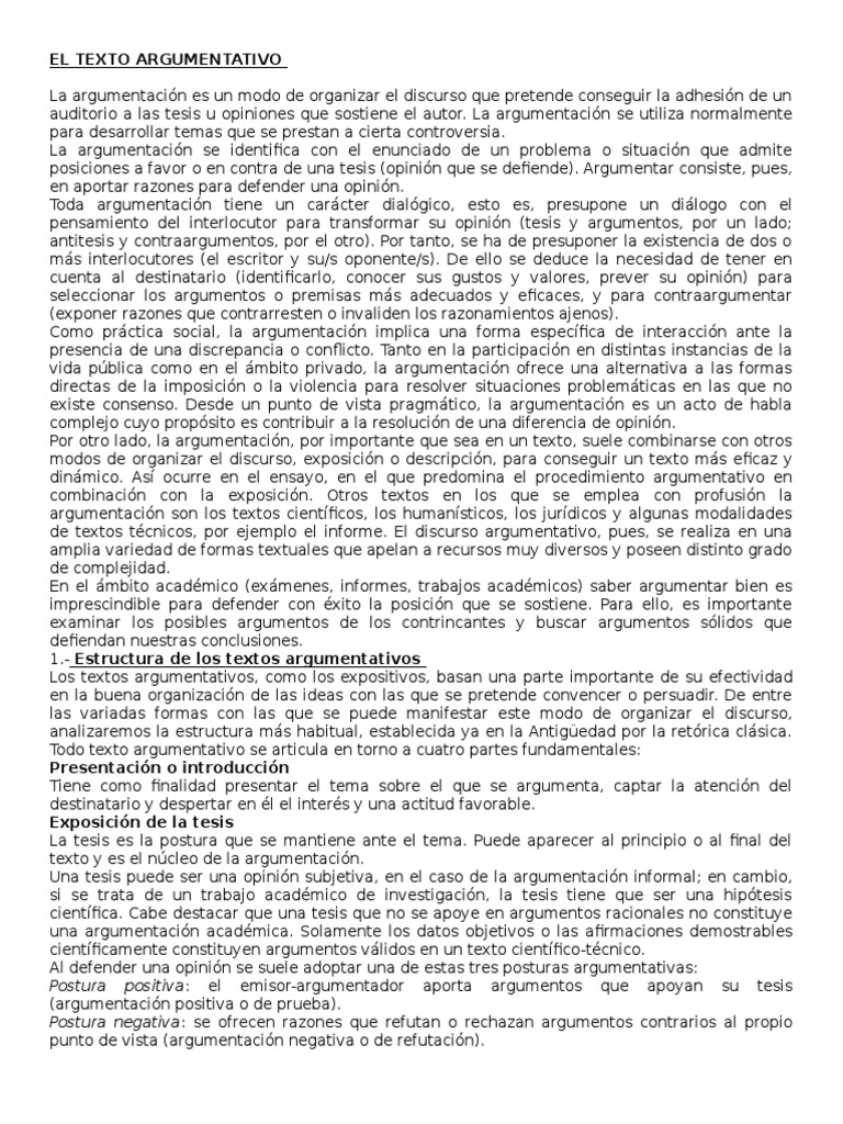 argumentación son los textos científicos, los humanísticos, los jurídicos y algunas modalidades