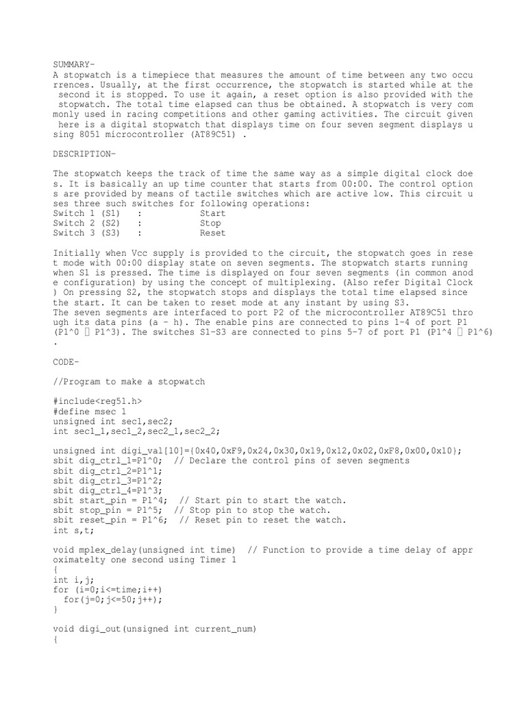 DESCRIPTIONThe stopwatch keeps the track of time the same way as a simple digital clock doe