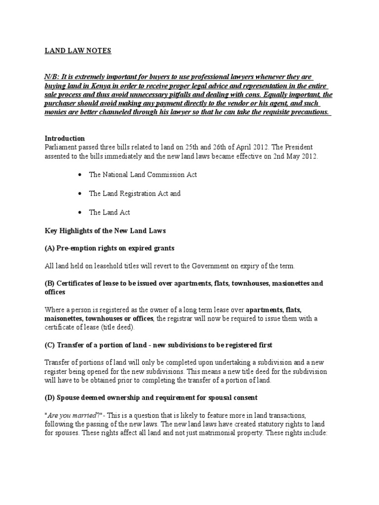 now been repealed and replaced by the Land Act, 2012 and the Land Registration Act, 2012,