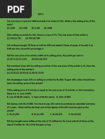 17) A trader marks his goods 30% above the cost price but allows 20% discount on marked price. What is his profit