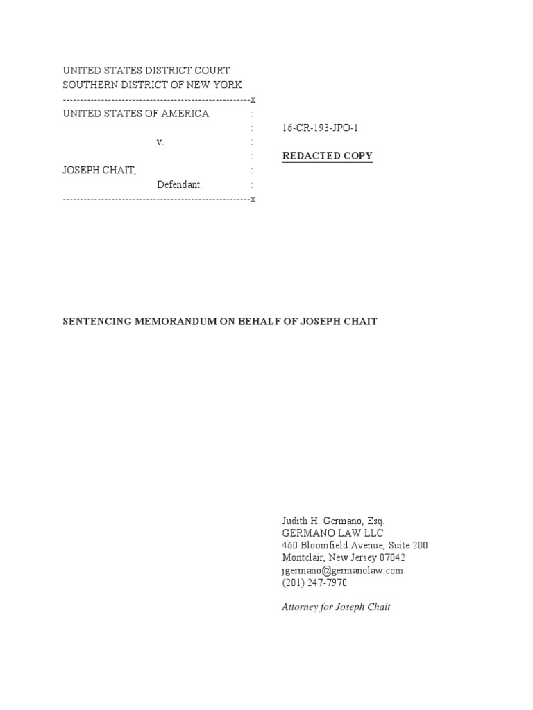 SENTENCING MEMORANDUM ON BEHALF OF JOSEPH CHAIT