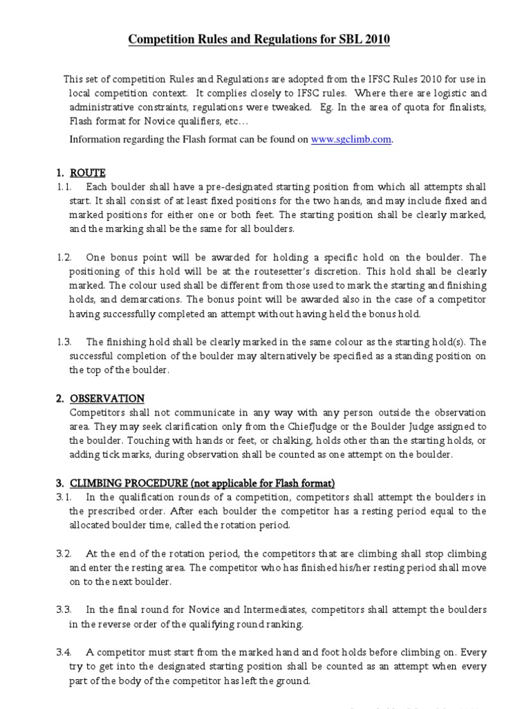 This set of competition Rules and Regulations are adopted from the IFSC Rules 2010 for use in