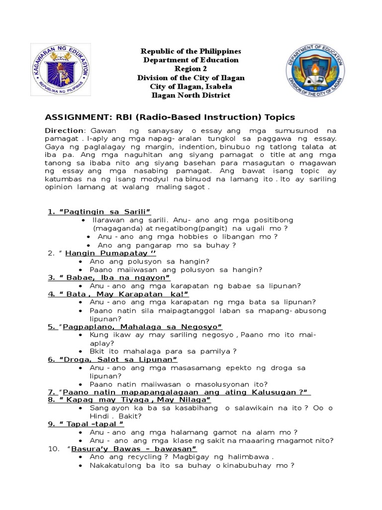 ng essay ang mga nasabing pamagat. Ang bawat isang topic ay