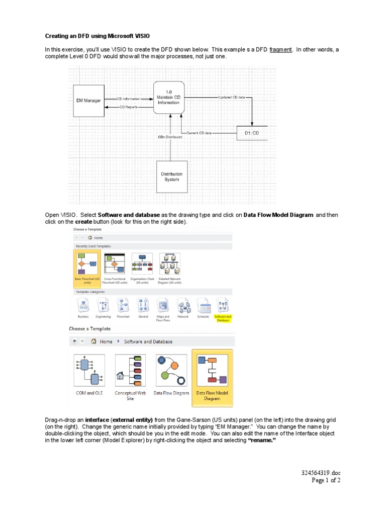 In this exercise, youll use VISIO to create the DFD shown below. This example s a DFD fragment. In other words, a