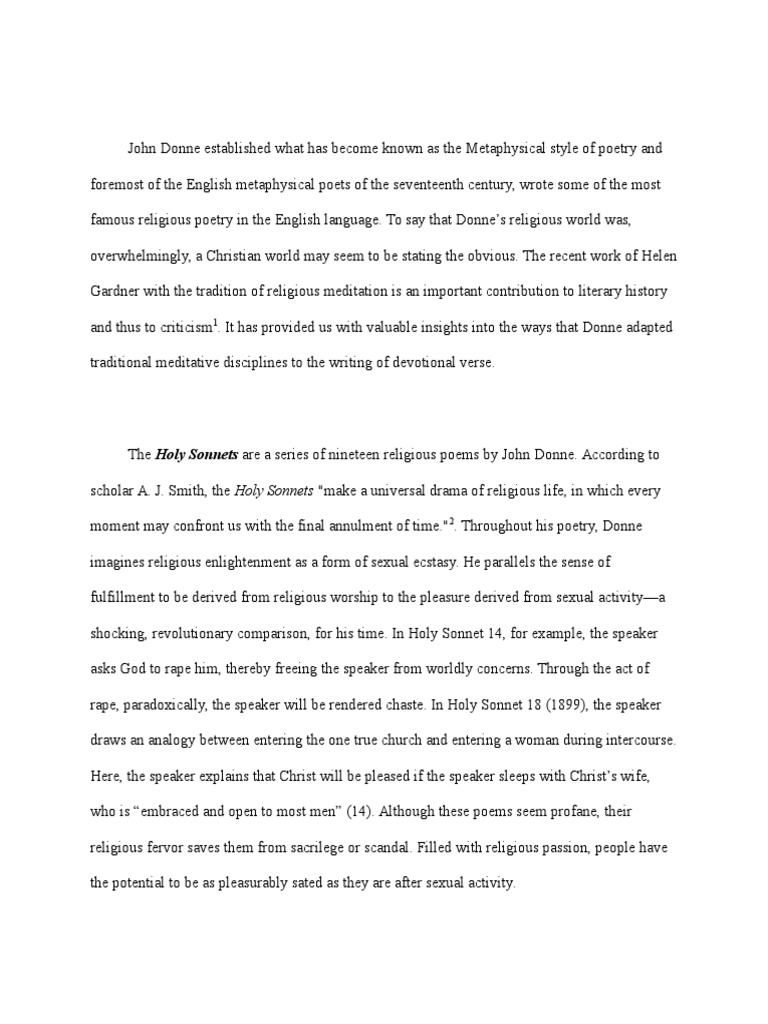 Donnes religious sonnets may be seen as love poems to God: as he writes in Batter my heart,