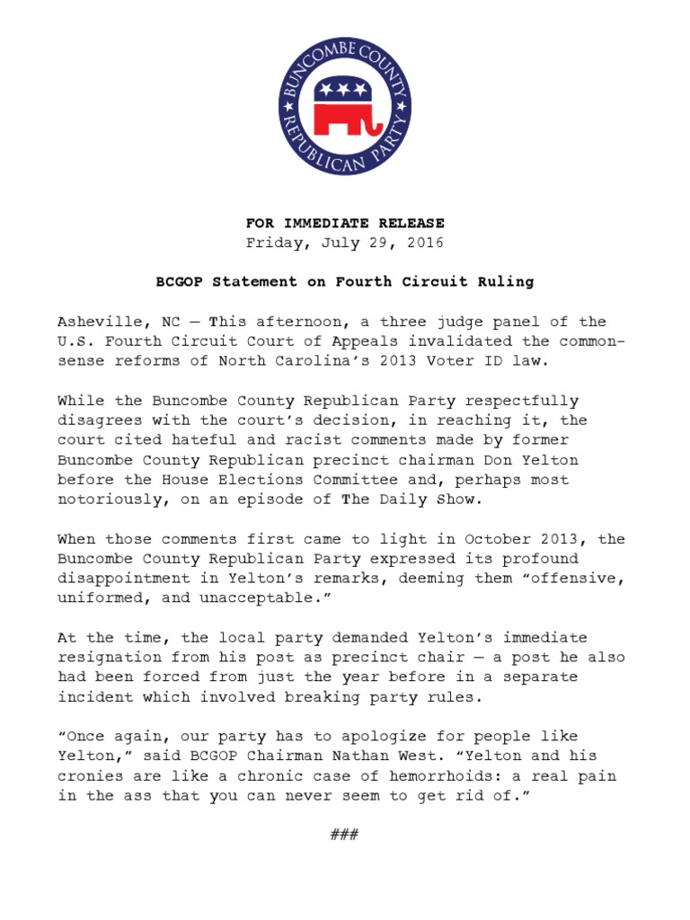 072916 BCGOP 4th Circuit Voter ID Don Yelton