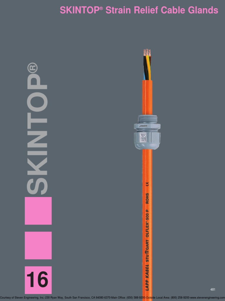 Dust-Proof, Moisture-Proof Plugs for PG, NPT & Metric SKINTOP Cable Glands