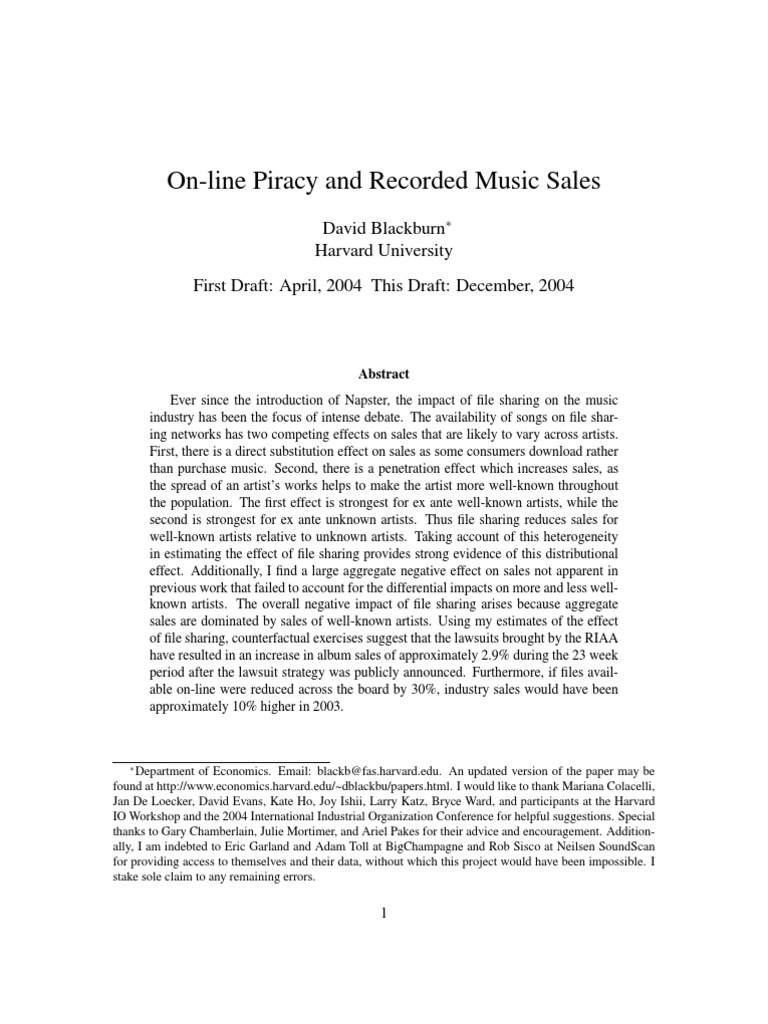 summary.3 The first attempt at measuring the effect of file sharing on sales was contracted