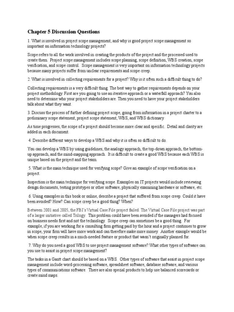 1. What is involved in project scope management, and why is good project scope management so