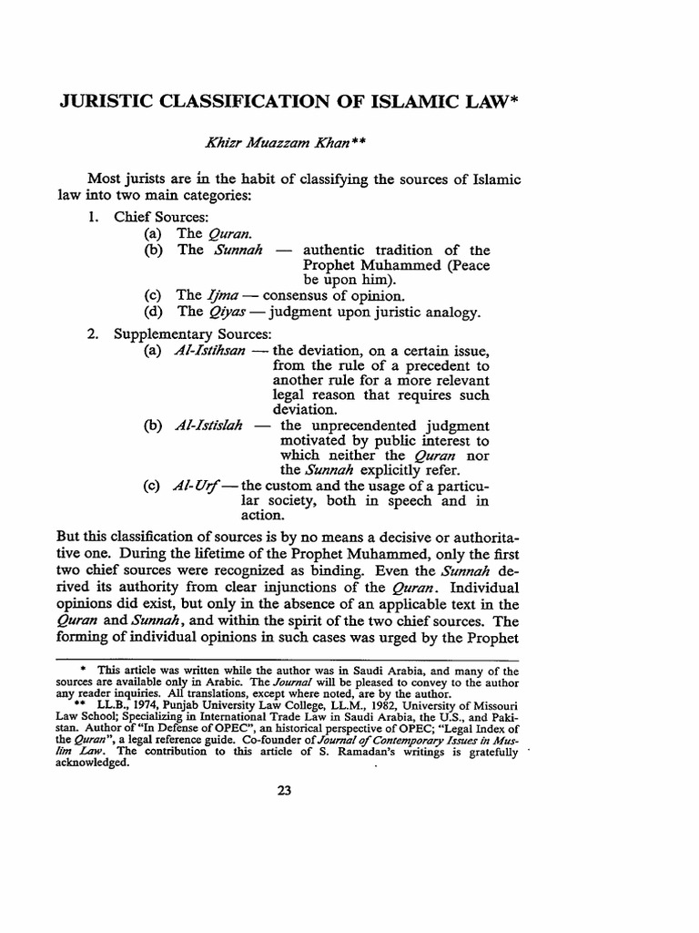 Similar to Khizr Khan Juristic Classification Islamic Law