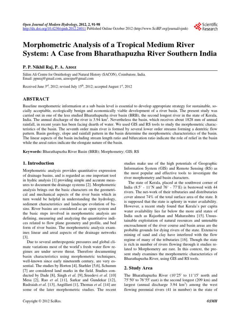 Keywords: Bharathapuzha River Basin (BRB); Morphometry; GIS; RS