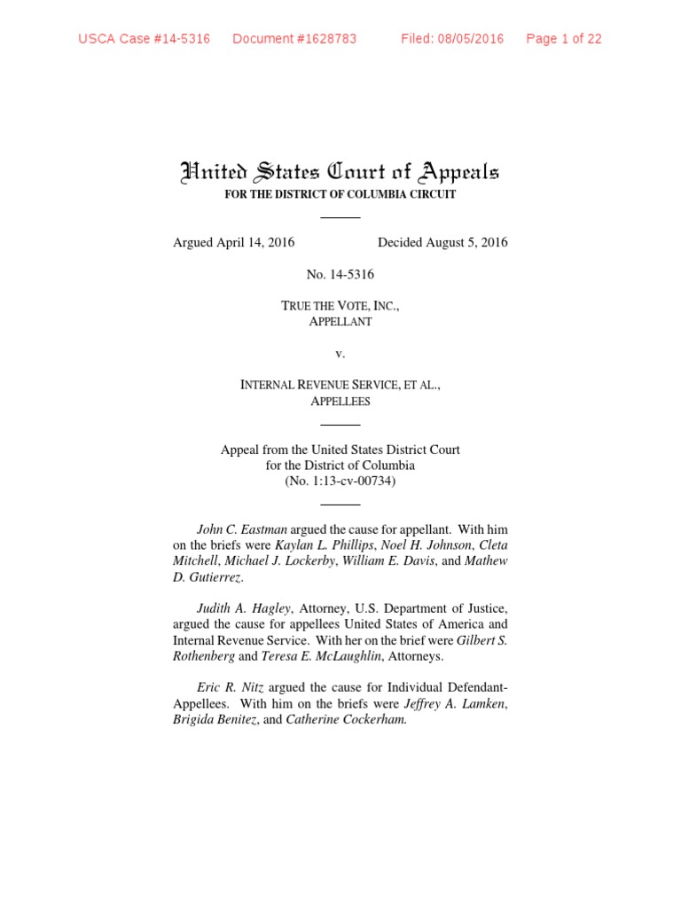 , 760 F.3d 1, 4 (D.C. Cir. 2014),although there is very little factual dispute between the partiesas to the conduct committed by the IRS.Instead of processing these applications in the normalcourse of IRS business, as would have been the case with other taxpayers, the IRS selected out these applicants for morerigorous review on the basis of their names, which were in each