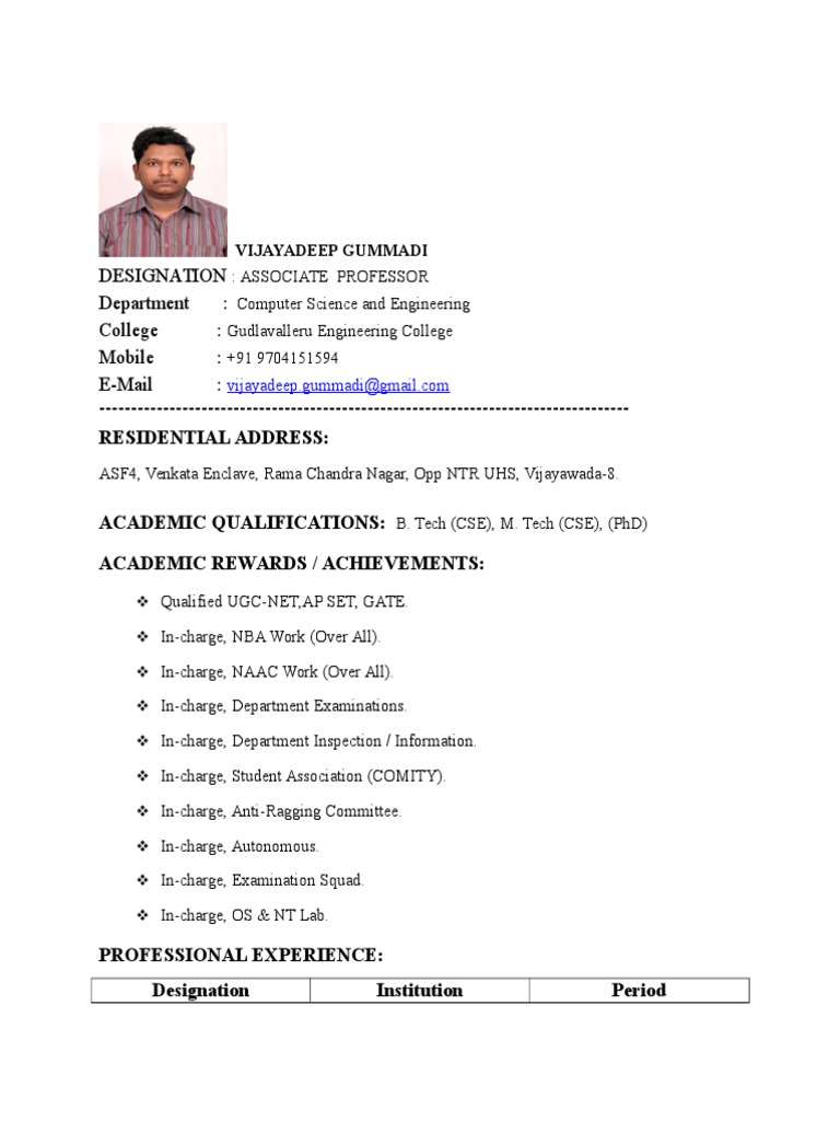 ACADEMIC QUALIFICATIONS: B. Tech (CSE), M. Tech (CSE), (PhD)