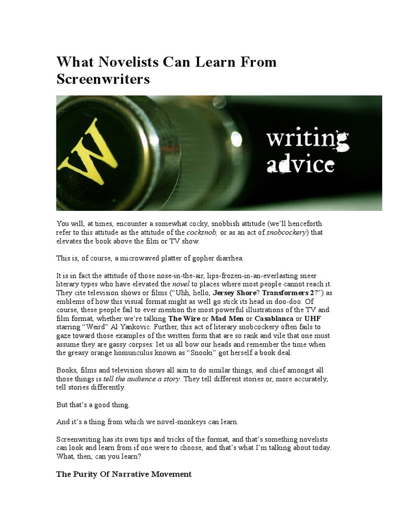 Screenwriting has its own tips and tricks of the format, and thats something novelists