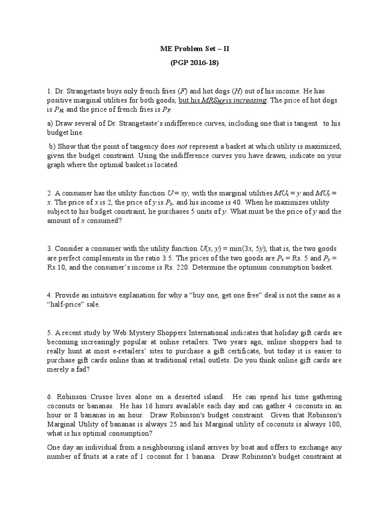 2. A consumer has the utility function U = xy, with the marginal utilities MUx = y and MUy =