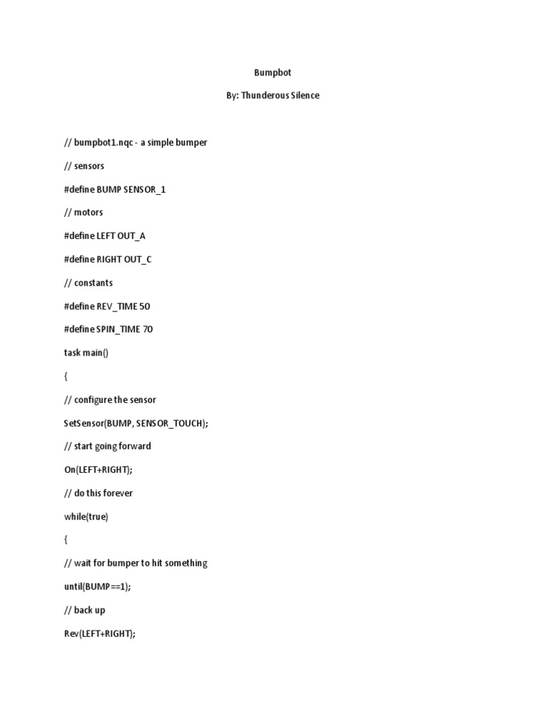 the bot to negotiate a more difficult course. Bumpbot1s control logic limits it to only making right