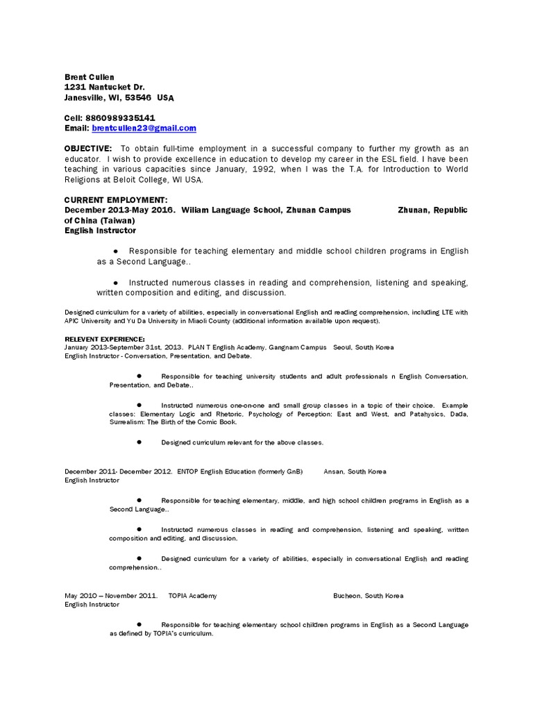 educator. I wish to provide excellence in education to develop my career in the ESL field. I have been