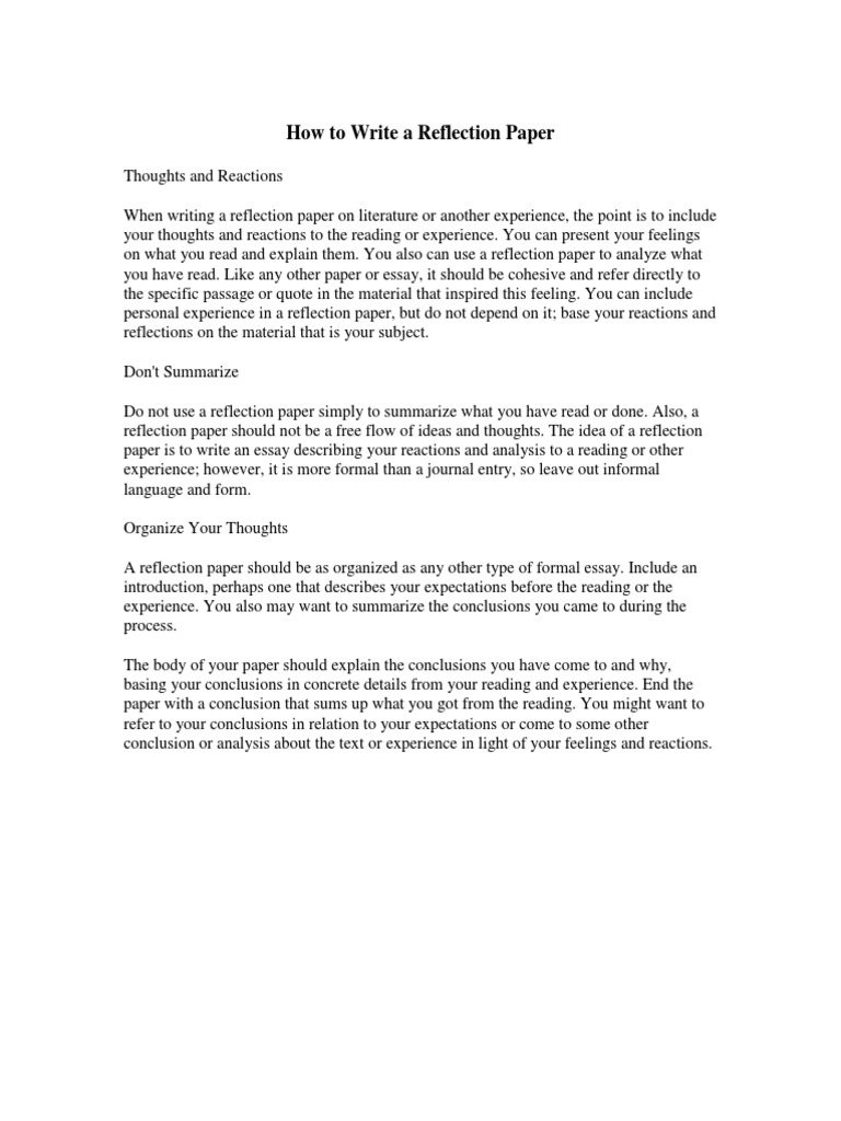 reflection paper should not be a free flow of ideas and thoughts. The idea of a reflection