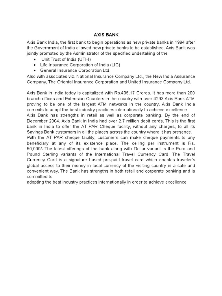 Axis Bank is today one of the most competitive and profitable banking