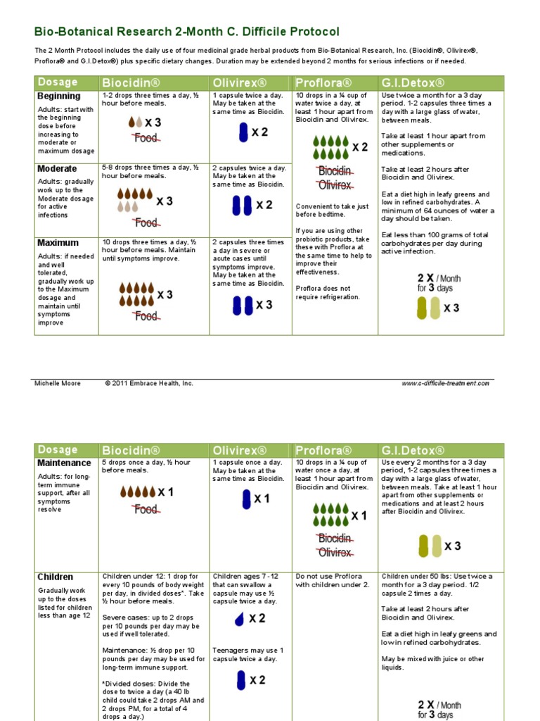 Proflora and [Link]) plus specific dietary changes. Duration may be extended beyond 2 months for serious infections or if needed.